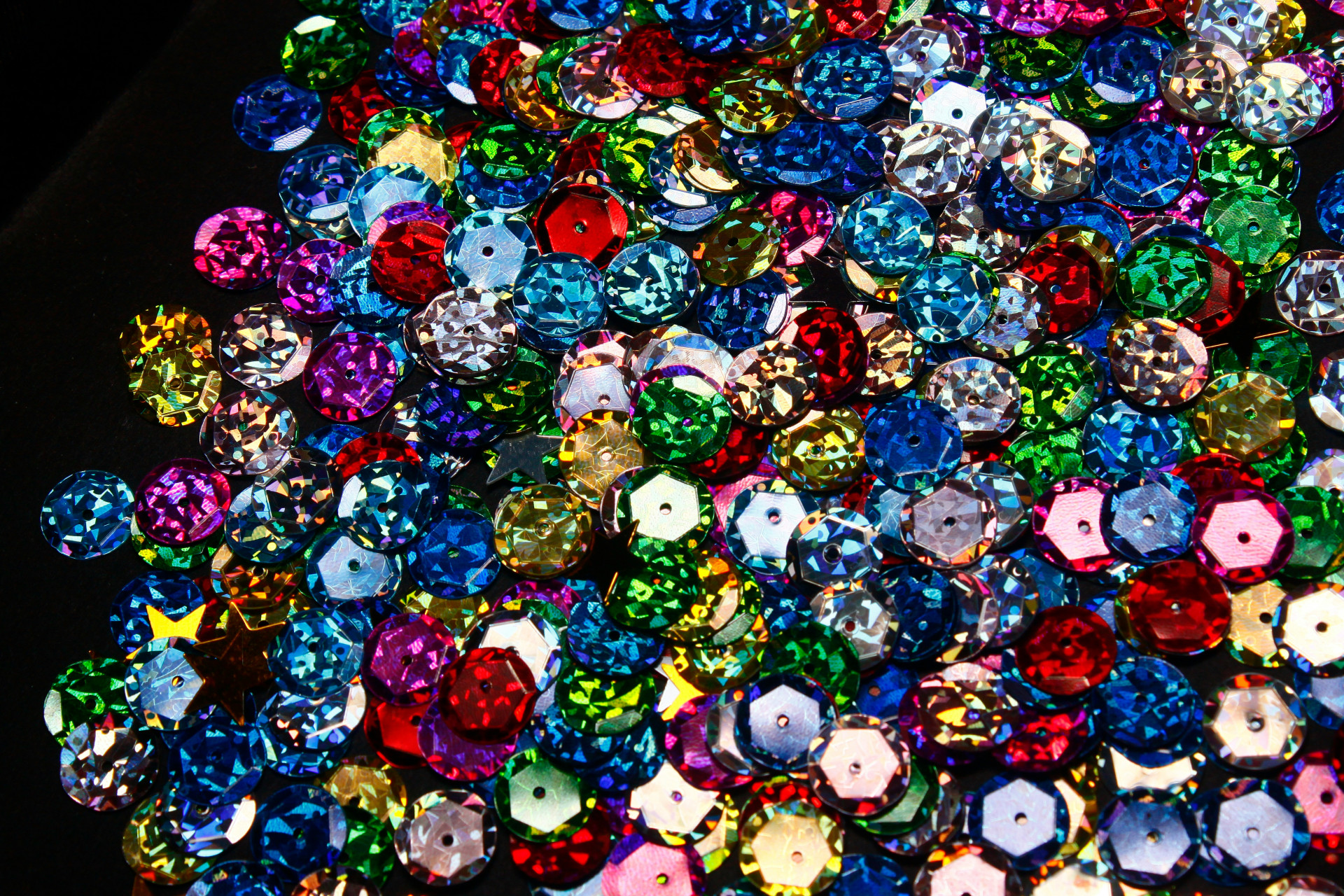 Pailletter fås i mange størrelser – fra mikroskopiske til store dekorative skiver. Små pailletter giver et diskret glimt, mens større skaber tydelige mønstre og effekter. Former som stjerner, blomster og hjerter kan bruges til at skabe temaer eller særlige udtryk.